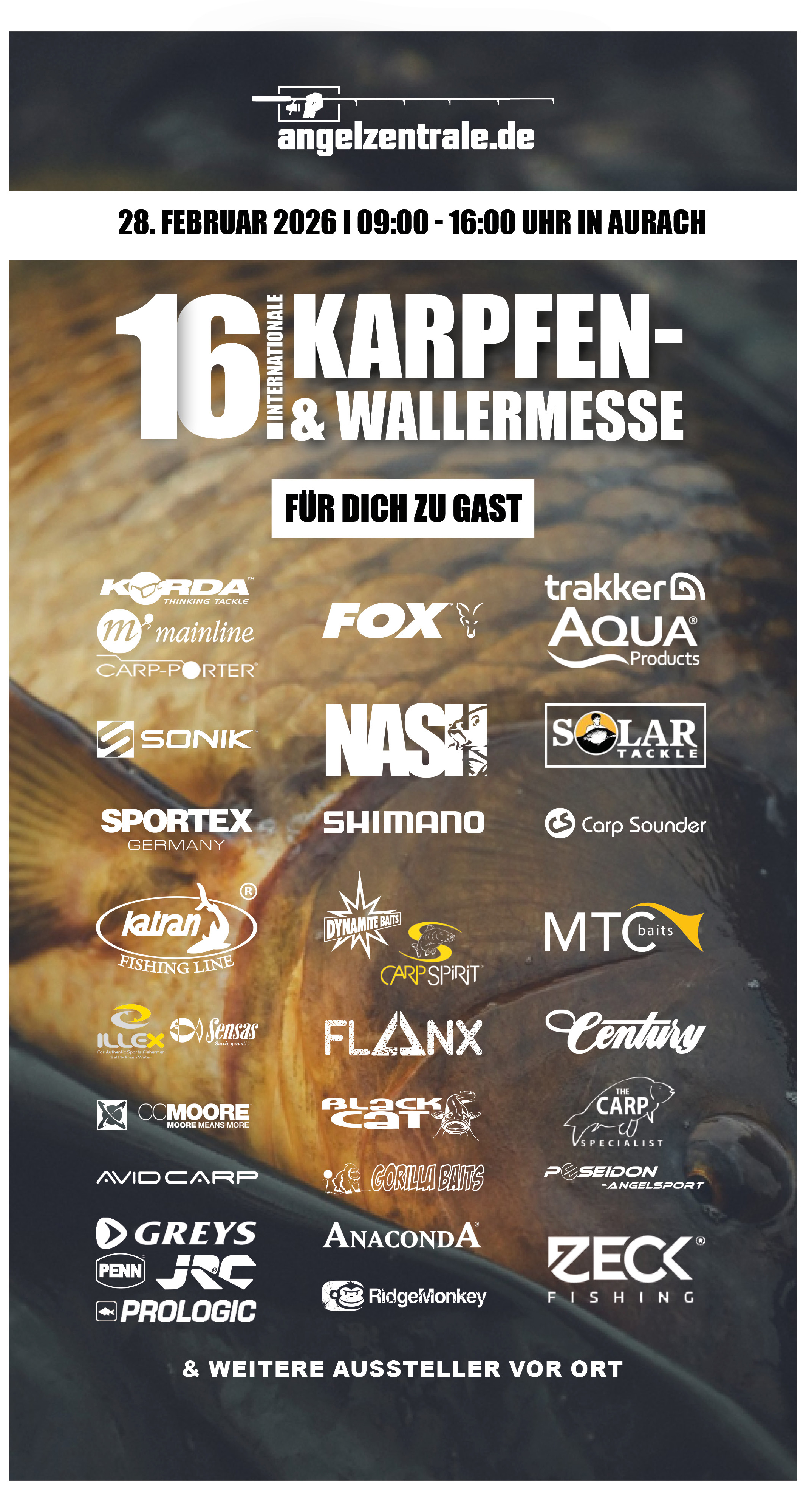weiterlesenDas Team von Adventure Fishing, Dieter Martens und Sascha Pingel, lädt auch dieses Jahr zur informativen und weit über die Grenzen Hamburgs bekannten Karpfen-Hausmesse ein. Am 4. März von 9 bis 20 Uhr und am 5. März von 9 bis 16 Uhr erwarten euch in der Reismühle 5 ein hochkarätiges Vortragsprogramm und natürlich tolle Angebote für den Saisonstart.Alle Vorträge und Shows werden auf einer Großbildleinwand gezeigt. Als Specials Guests mit dabei sind:Achim Schlüssel (mit Vortrag), Thomas Tschernich (TT Baits), Philipp Zander (Naturebaits, Cam on bank), Sebastian Lendzian (Korda), Hauke Jahn und Kim Eberwein (Proline), Hauke Kleinen, Hauke Grant (Crazy Carp Crew) und Raubfisch-Crack Guido Jubelt.Natürlich sind auch schon viele 2016er Neuheiten von Fox, Korda, Proline, Naturebaits, T.T.Baits, Dynamite Baits, Nash, Shimano, Daiwa, Greys, Pinpoint uvm. erhältlich.Es erwarten Euch Top-Messeangebote für Boilies, Tigernuts, Pellets, Ruten, Rollen, Bissanzeiger, Swinger, Schlauchboote, Elektromotoren, Bekleidung, Zelte und vieles mehr. Hier geht es zu den Messeangeboten für die Frühjahrs-Hausmesse bei Adventure Fishing:https://www.adventure-fishing-online.de/html/down.php?fid=70Hier findet ihr den offiziellen Messeflyer:https://www.adventure-fishing-online.de/html/down.php?fid=69Also vorgemerkt:Termin: Freitag, den 4. März von 9 bis 20 Uhr und Samstag, den 5. März von 9 bis 16 UhrWo: Reismühle 5, 22087 Hamburg, Tel.: 040/251 98 251Alle Infos findet ihr natürlich auch hier:https://www.adventure-fishing-online.de/start.php