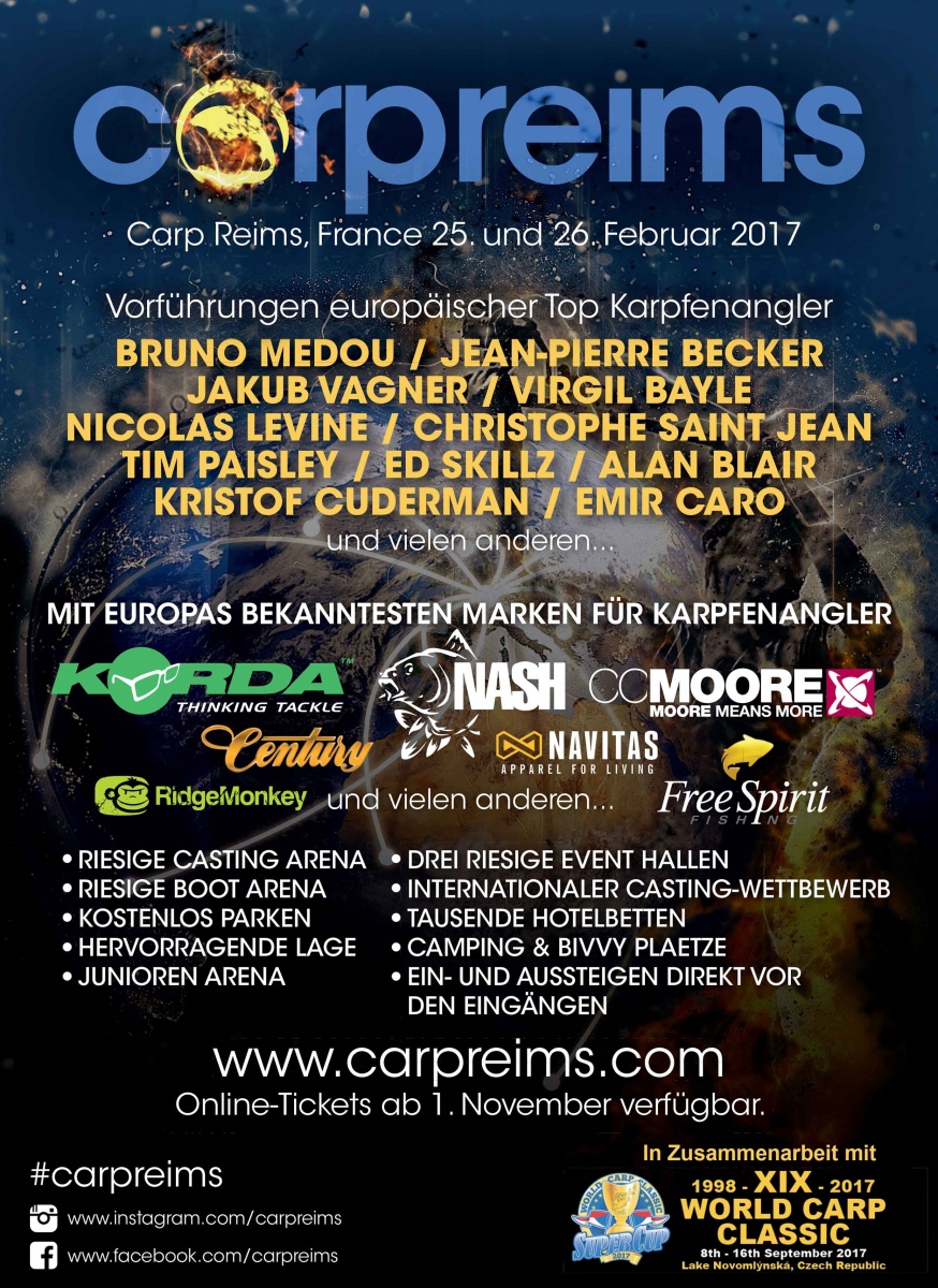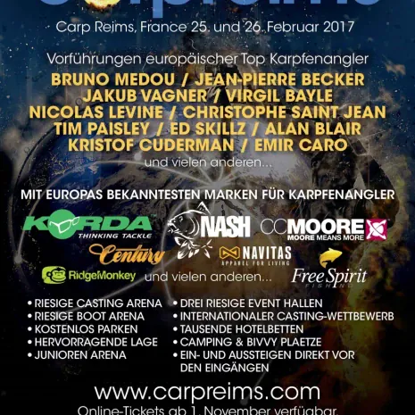 Reims, gelegen im Nordosten Frankreichs, bildet den Austragungsort für eine neue internationale Mega-Messe für Karpfenangler. Die Carp Reims wird am 25. und 26. Februar 2017 stattfinden.