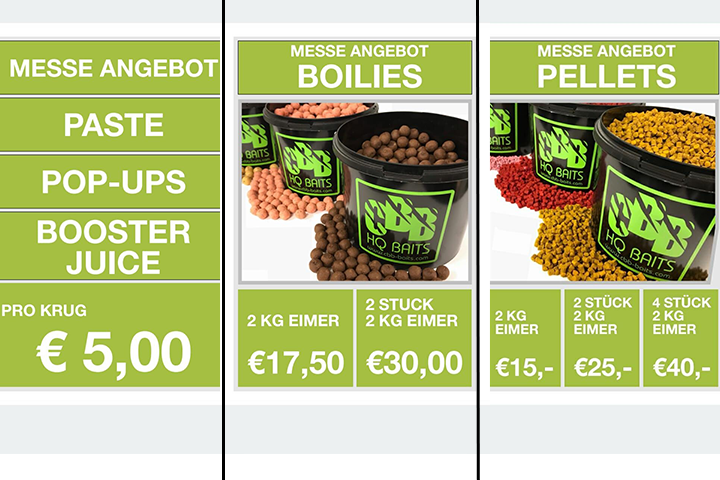 Viele Karpfenangler nutzen die Messen nicht nur, um sich über neue Produkte zu informieren, sondern natürlich auch, um das ein oder andere Schnäppchen abzustauben. Am CBB HQ Baits Messestand auf der Carp Zwolle, erwarten euch aus diesem Grund folgende Angebote: