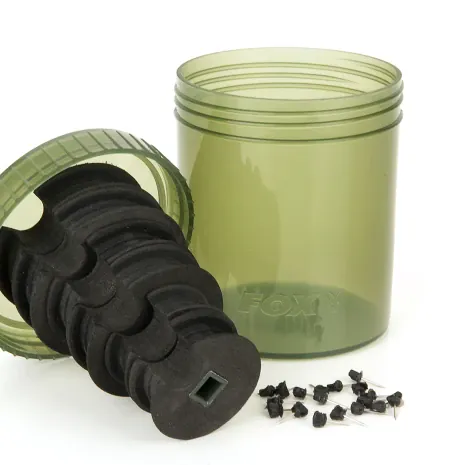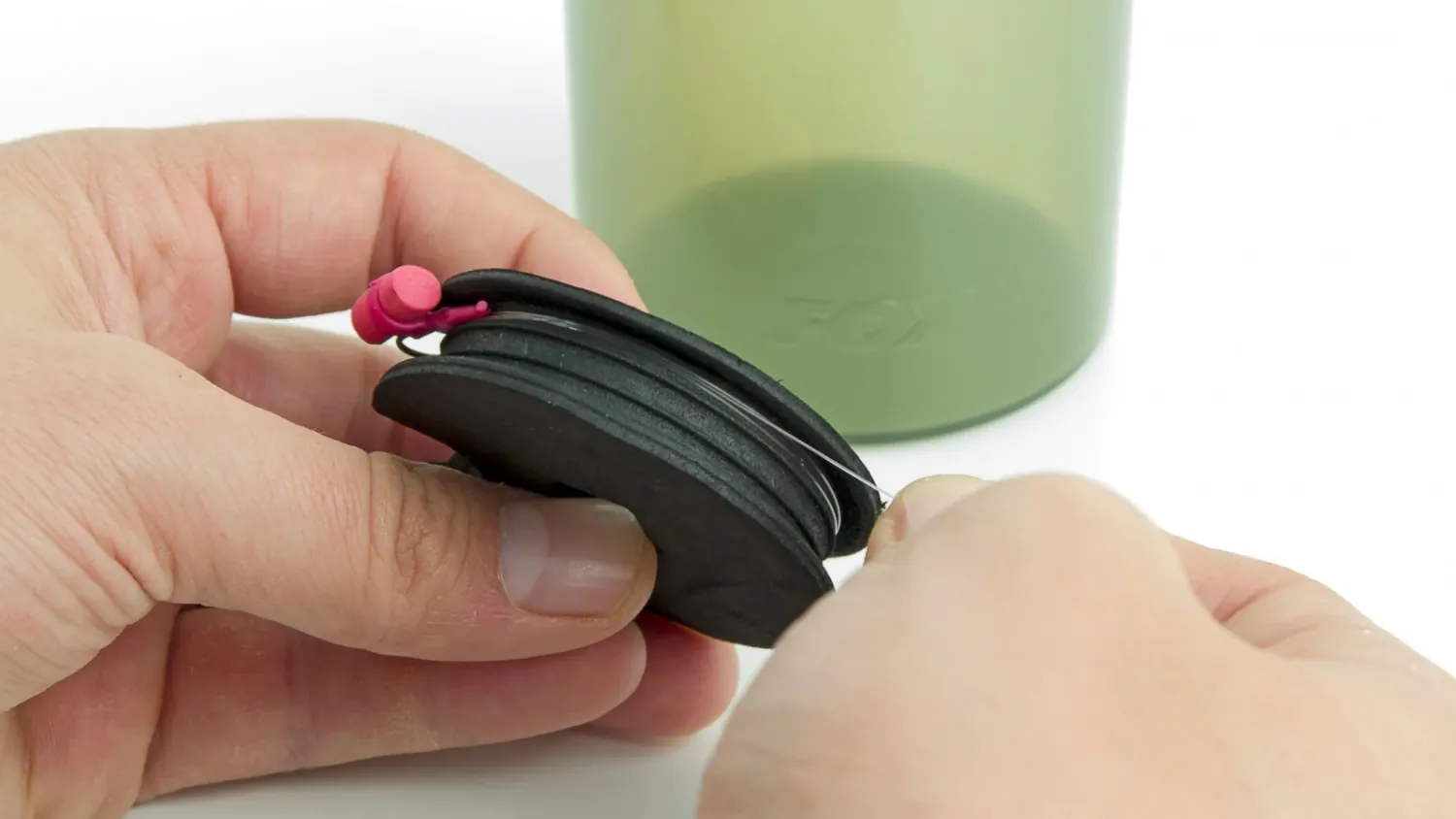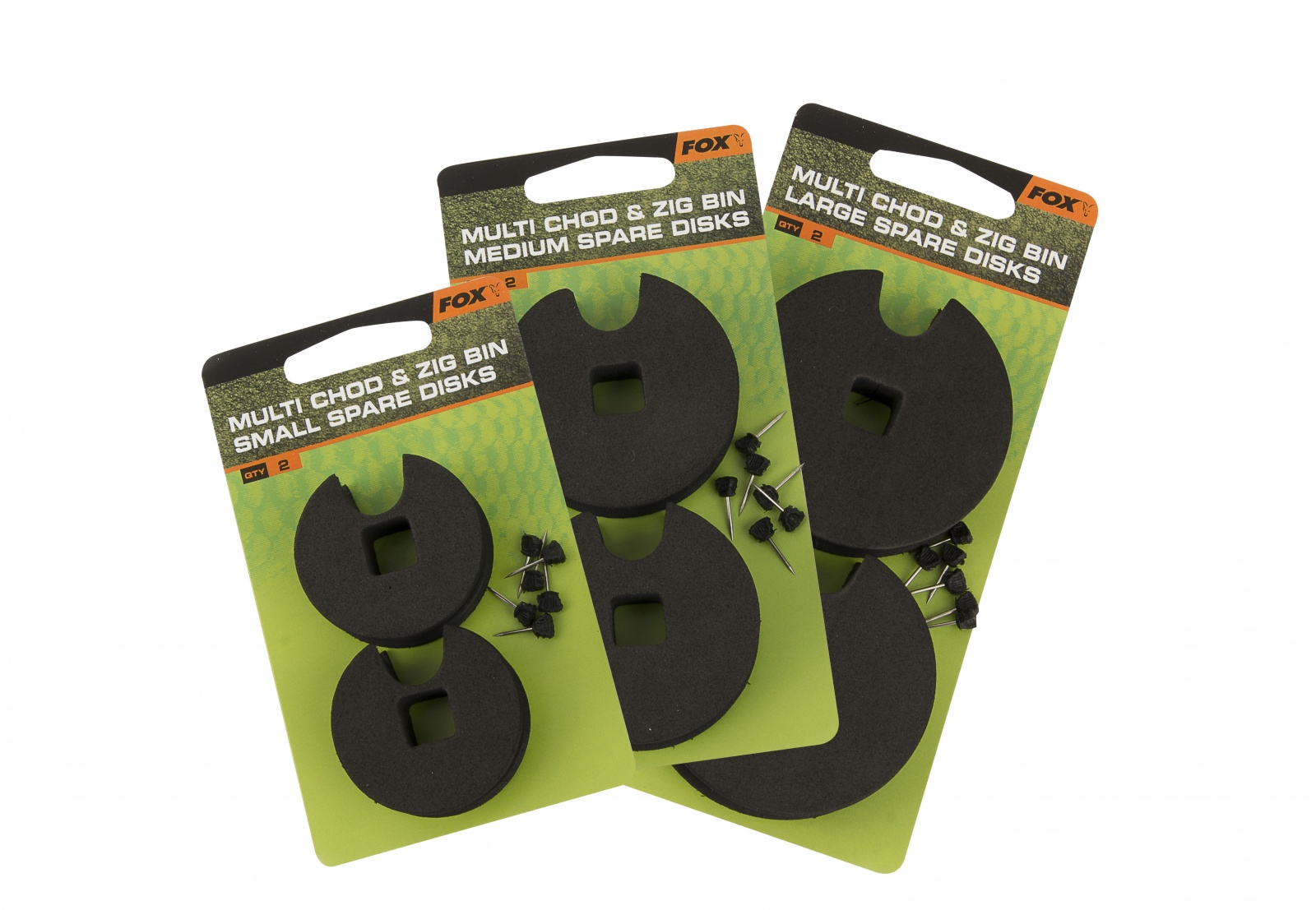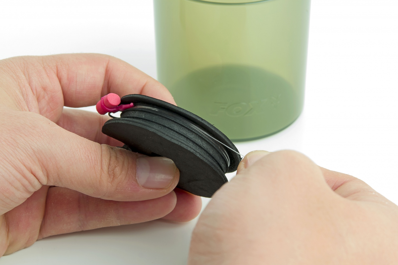 Fox hat deshalb den Multi Chod & Zig Bin entwickelt, um für beide Rig-Typen auf einmal Abhilfe zu schaffen. In der Grundausstattung ist der Mulit Bin mit insgesamt sechs Scheiben ausgestattet (zwei von jeder Größe). Die größten Scheiben lassen sich ideal zum Aufwickeln von Zig-Rigs nutzen und haben eine weitere unscheinbare Eigenschaft: Zwei Umwicklungen ergeben eine Zig-Länge von einem Fuß, was ca. 30 cm entspricht. Perfekt also, um die richtige Angeltiefe abzumessen.