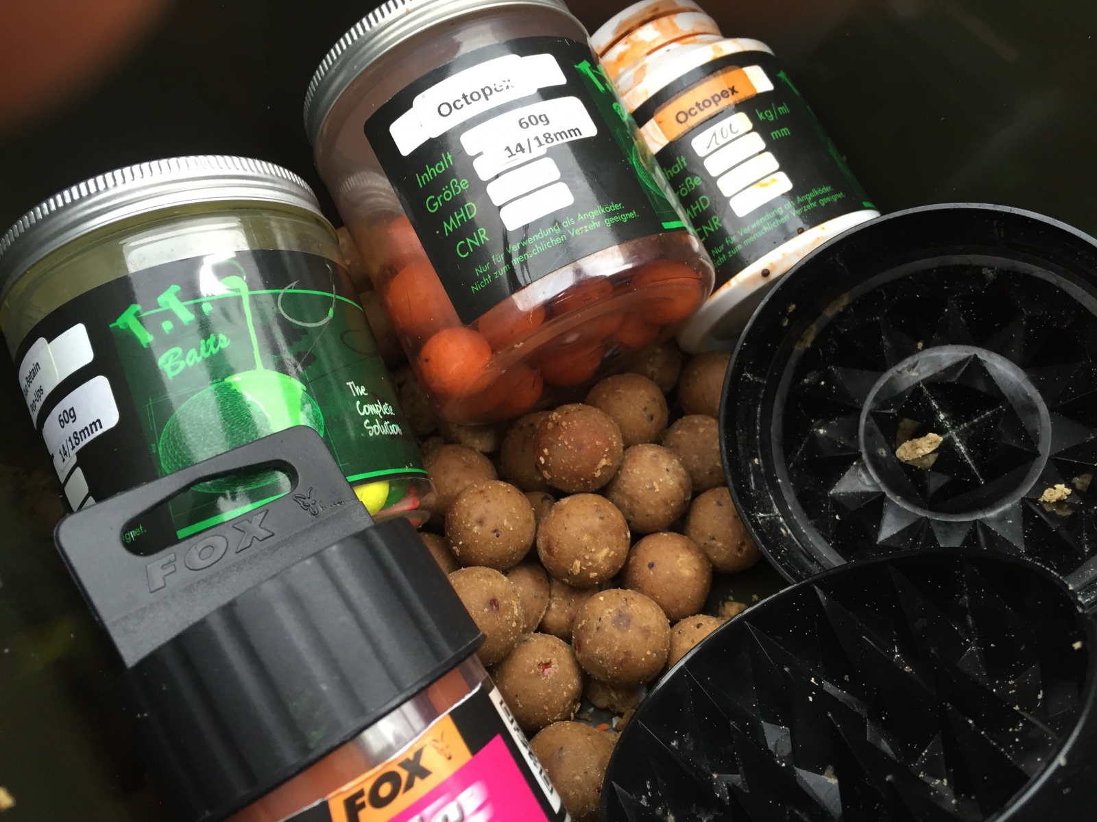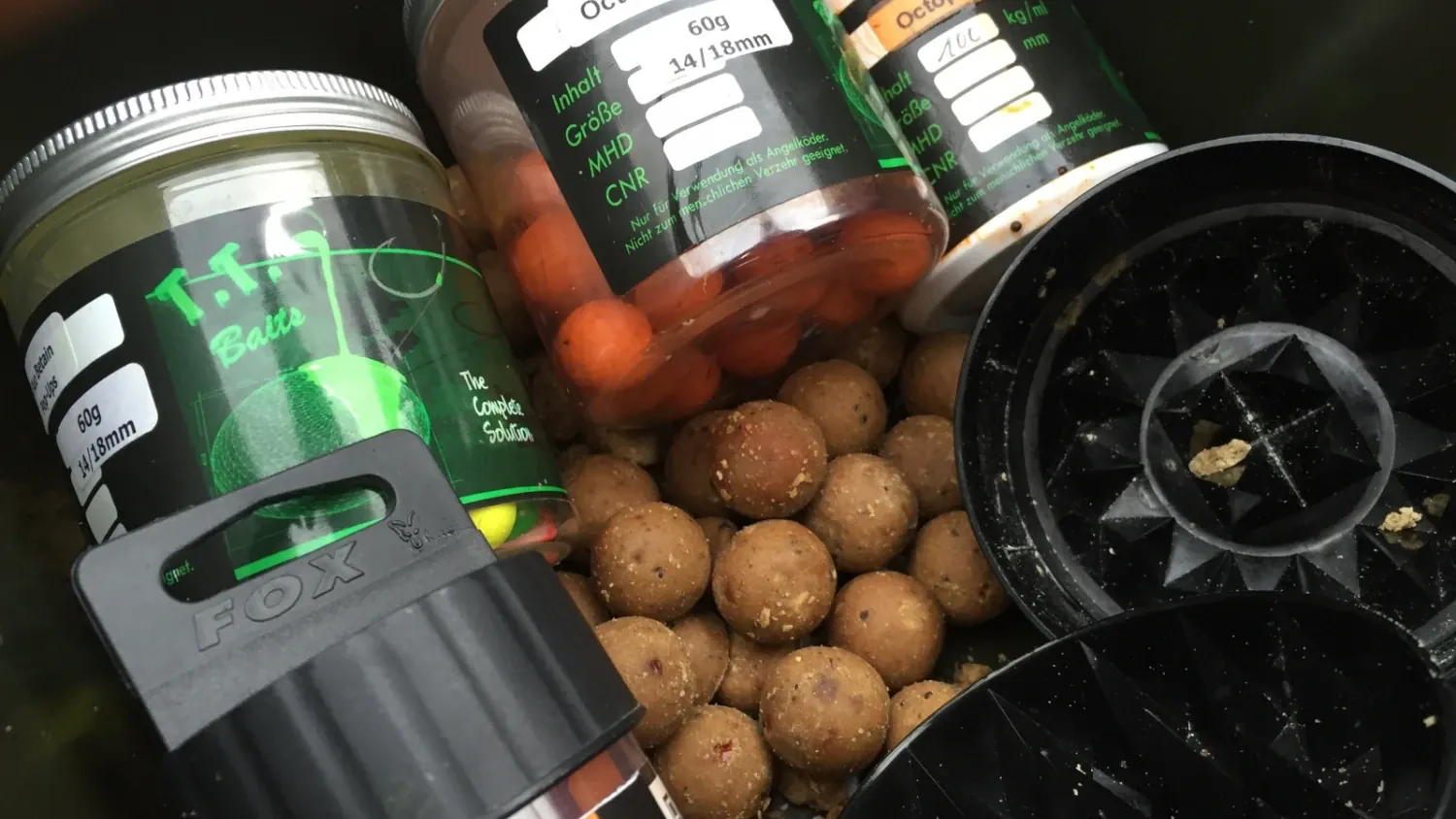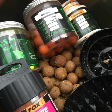 Für meine Winterangelei verwende ich Boilies, die gut im kalten Wasser arbeiten und Ihre Aromen zügig frei geben. Seit einigen Jahren vertraue ich der Boilieschmiede T.T. Baits. Gerade der Octopex und die Protos aus dieser Range sind hervorragend für diese Bedingungen geeignet.