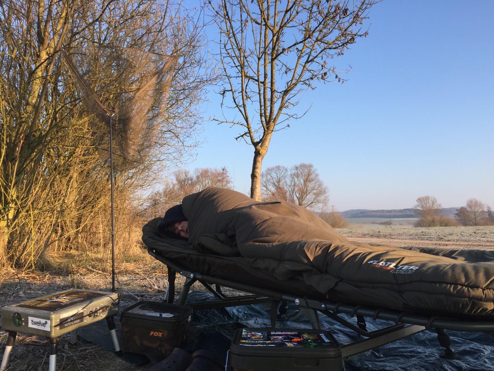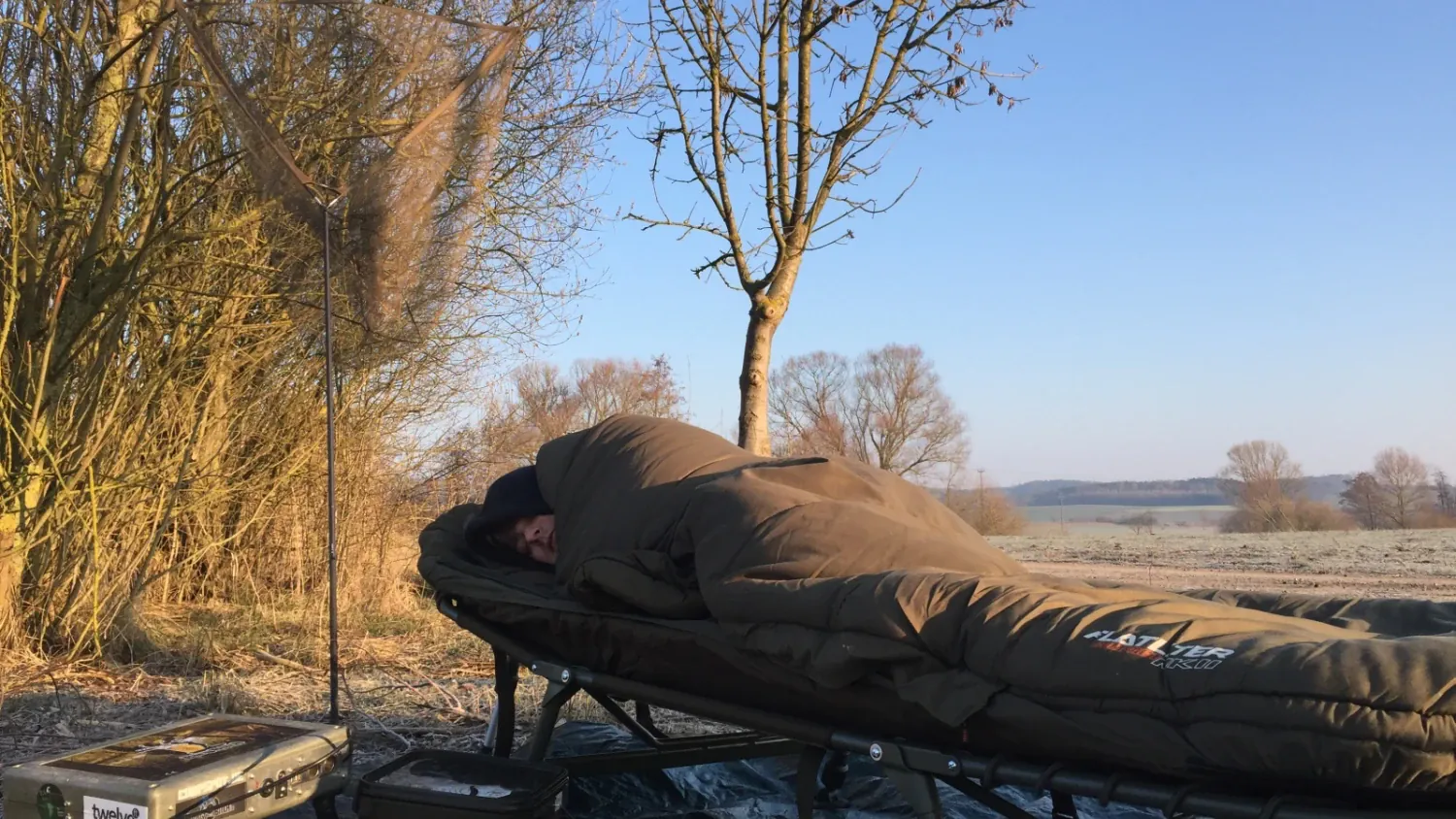 Meine zweite Rute legte ich in einem tieferen Teil des Sees ab, baute schnell des restliche Tackle auf und freute mich, nach einer langen Arbeitsnacht, auf meine Liege!
