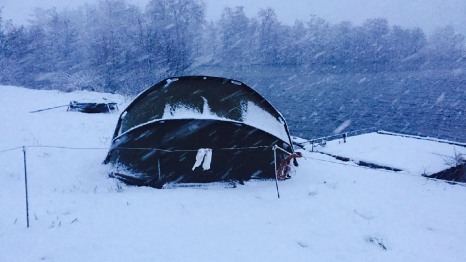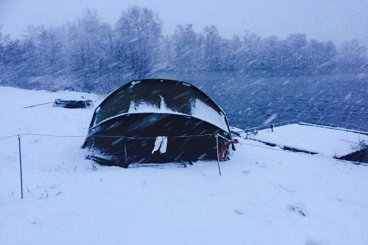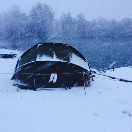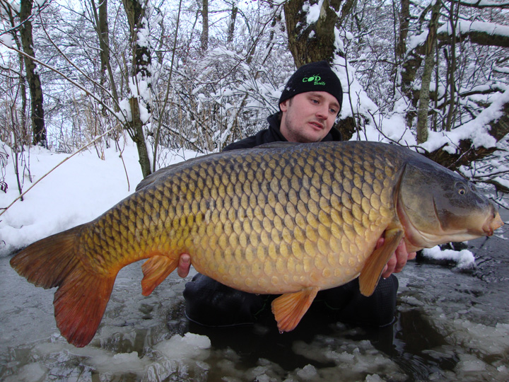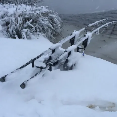 Als ich morgens aufwachte dachte ich mir, warum ist es noch so dunkel im Zelt? Als ich rausschaute, traute ich meinen Augen kaum, es hatte geschneit und wie! Nun wurden selbstverständlich ein paar Bilder dieser wunderschönen Schneekulisse gemacht. Meine Kumpels fragten natürlich im Laufe des Vormittags, ob die Nacht über was ging. Leider musste ich verneinen, jeder bekam aber die hoffnungsvolle Nachricht: „Jetzt ein Schneekarpfen - das wär´s“.