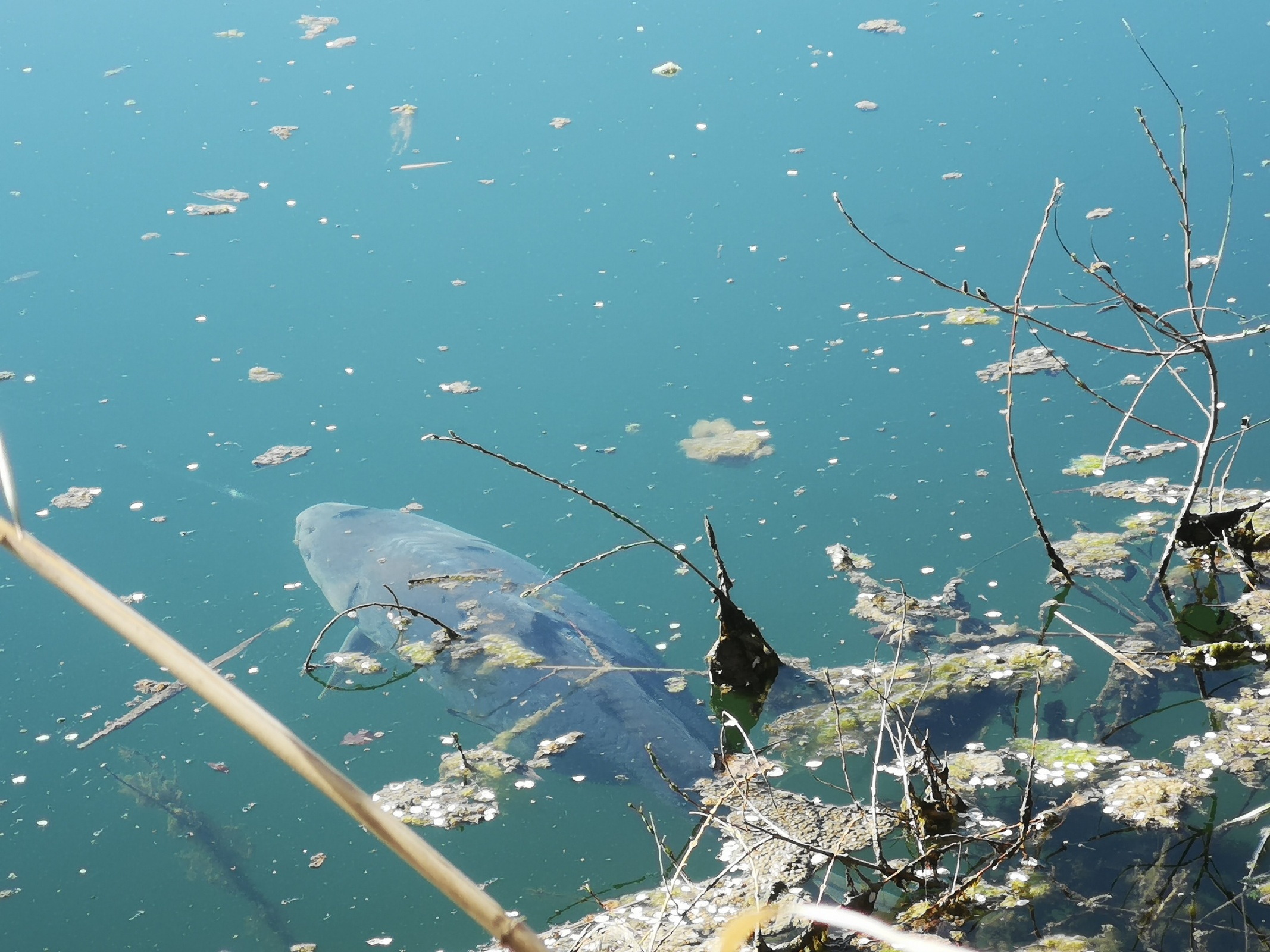 Tatsächlich war es mir nur sehr schwer möglich, an meinen Spot zu gelangen. Alles war dicht bewachsen, verziert mit dornenbewehrten Hecken, doch am Ende hatte ich es geschafft. Verkratzt, aber geschafft! Es dauerte auch nicht lange und der dickbäuchige Spiegler zeigte sich in seiner vollen Pracht. Zusammen mit den anderen Fischen – es hatten sich noch einige andere dazugesellt – dümpelte er an der Oberfläche, genoss die immer stärker werdenden Sonnenstrahlen und machte vorerst keine Anstalten, Nahrung aufzunehmen. So leise und vorsichtig wie ich nur sein konnte, pendelte ich zwei kleine Popup-Maiskörnchen an freier Leine mit ner Hand voll Dosenmais auf die flache, freie Stelle vor meinen Füßen. Die Fische schienen das Ganze dennoch zu registrieren. Es dauerte nur einige Sekunden, ehe die ersten Karpfen die flache Stelle aufsuchten, aber ganz genau inspizierten, was hier vor sich ging. Ich fühlte mich tatsächlich beobachtet. So konnte ich mich nicht wirklich verstecken, stand präsent am Ufer, keine Chance, ohne komplettes Verkratzen „unsichtbar zu werden“. Sie rochen den Braten, spürten, dass da was nicht stimmte… Es dauerte eine gefühlte Ewigkeit, bis sich die Scheu der Fische etwas legte. Immer wieder verschwanden die Fische im tieferen Wasser, fingen an zu fressen, ließen die flache Stelle aber zumindest futtertechnisch außer Acht.