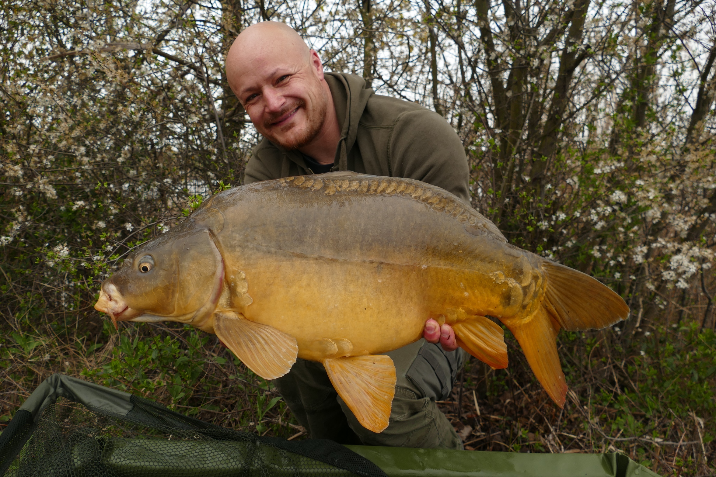 Wir hatten noch nicht einmal Mittagszeit und für mich war diese Session schon gelaufen! Bis in den späten Abend hinein blieb ich wach. Die Müdigkeit einmal überwunden, geht das schon. Der Tag und die Nacht verliefen mehr oder minder ruhig, verglichen mit den ersten Stunden unserer Session. Andi fing noch einen Mini-Schuppi – wahrscheinlich ein überlebender Wallerköder – und auch mir war es vergönnt, weitere Schönheiten dieses Gewässers zu fangen. Dieser dicke, fettbeschuppte Spiegler war aber definitiv das Highlight der Session, wenn nicht sogar des ganzen Monats April.