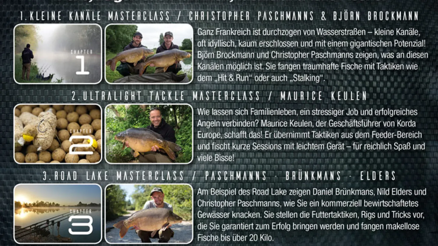 Erst letzte Woche berichteten wir darüber, dass die neue englische Carpfishing MASTRCLASS in den Startlöchern steht und diese Woche steht nun fest, dass auch die neue deutsche MASTERCLASS mit dem deutschen Korda-Team in Zwolle erscheint…