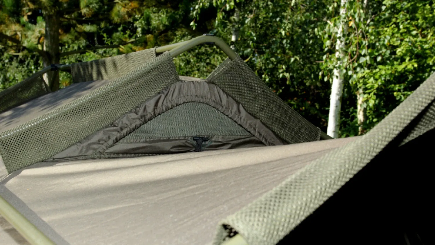 Eine Nash-Neuheit für 2015, auf die viele sehnsüchtig warten ist definitiv das neue "Double Top Apex" Bivvy! Es stellt das neue Flaggschiff unter den Nash Bivvys dar und hat eine Menge feiner Features vorzuweisen. Besonders punkten kann es durch seine überdurchschnittliche Raumhöhe und das verarbeitete "Aqua Sense Hydra" Material. Dieses ist nicht nur besonders reißfest und widerstandsfähig, sondern auch über Jahre hinweg wasser- und feuchtigkeitsresistent. Ein weiteres Highlight des "Double Top Apex" ist die ausgezeichnete Luftzirkulation im Zelt, die durch kleine Ventilationsfenster sichergestellt wird. Tau- und Tropfwasser im Zelt gehört mit dem Apex der Vergangenheit an.