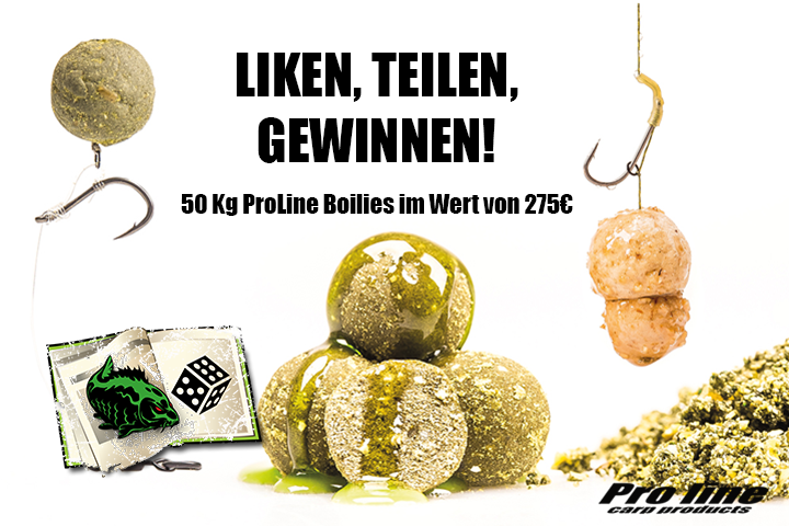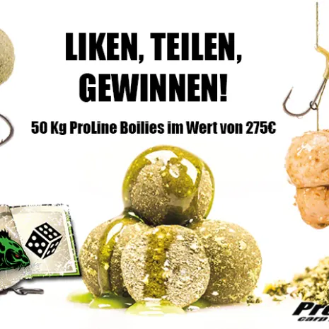 Um euch euren Saisonvorrat an Boilies zu sichern, müsst ihr auf der Facebook-Seite von ProLine an dem Gewinnspiel teilnehmen. Euch trennen dabei nur zwei Schritte von der Gewinnchance.