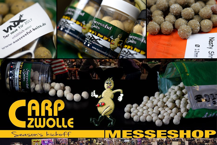 Kaum ist das Carpmeeting Hannover Geschichte, wartet das nächste Messe-Highlight auf Karpfenangler aus ganz Europa. Die Rede ist natürlich von der Carp Zwolle, die vom 03. - 05.02.2017 in den Niederlanden stattfindet. Passend zur Messepräsenz in Zwolle bietet Successful Baits wieder online einen Messeshop mit tollen Messe-Angeboten zum Vorbestellen an: