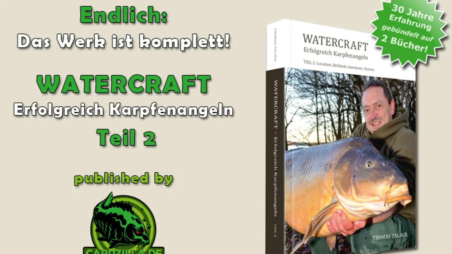 Schon morgen erwartet euch der 2. Teil des großen Interviews mit Thomas Talaga, Buchautor von WATERCRAFT – Erfolgreich Karpfenangeln 1 und 2. Dann geht es ins Detail: Thomas nimmt dazu Stellung, wie wichtig Faktoren wie Luftdruck, Mondphasen oder der Einfluss des Windes für den Fangerfolg ist. Dazu verrät er, was wirklich wichtig ist, wenn man zur Laichzeit oder im Winter Karpfen fangen will, spricht über die Gastautoren in WATERCRAFT 2 und erzählt, wie es in diesem Jahr bei ihm am Wasser lief!