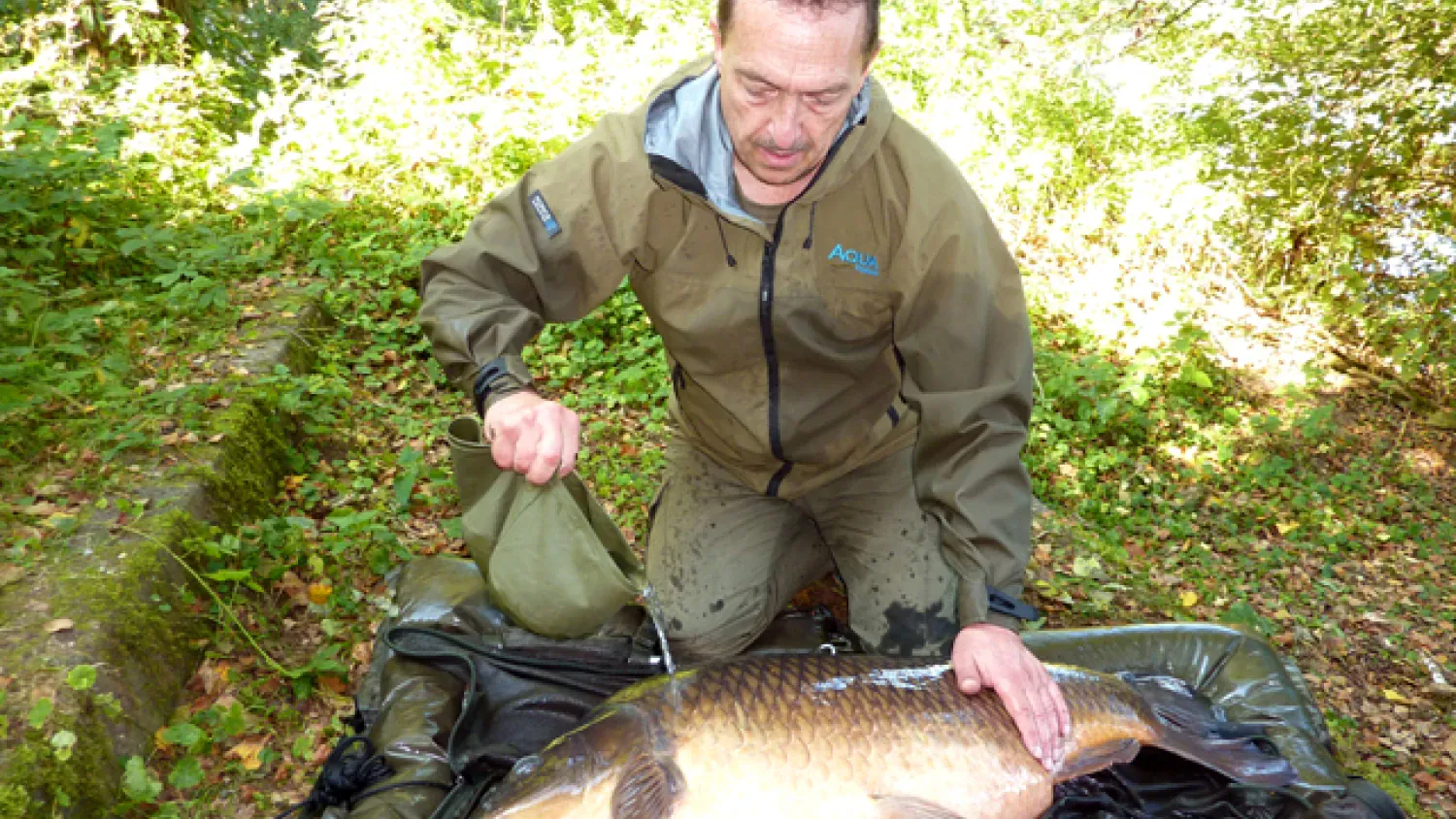 Ich kannte den Spiegler bereits. Damit meine ich nicht nur, dass ich von seiner Existenz im Bilde war. Nein, ich durfte ihn bereits mit meinen Keschermaschen einfangen und in meinen Armen halten. Das Ganze ereignete sich einige Monate bevor das letztendliche Titelbild des neuen Buches entstand. Zu diesem Zeitpunkt war dies für mich eine faustdicke Überraschung. Allerdings war mir bewusst, dass der massive Spiegler erst kürzlich sein Laichgeschäft hinter sich gebracht hatte. Die Spuren dieser Prozedur waren einfach unverkennbar. Keine Frage, klar war ich glücklich so einen klasse Fisch überlistet zu haben. Doch aller Wahrscheinlichkeit nach war er zu diesem Zeitpunkt auf meine Futtergaben weit mehr angewiesen als ansonsten üblich.